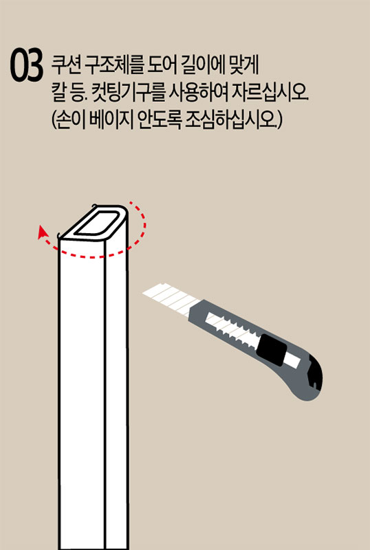 DOOR FINGER PROTECTOR™ Casement SD-35 여닫이용 SD-35 안전쿠션 구성 및 결합도 조립순서 여닫이용 설치 1번 여닫이용 설치 2번 여닫이용 설치 3번 여닫이용 설치 4번